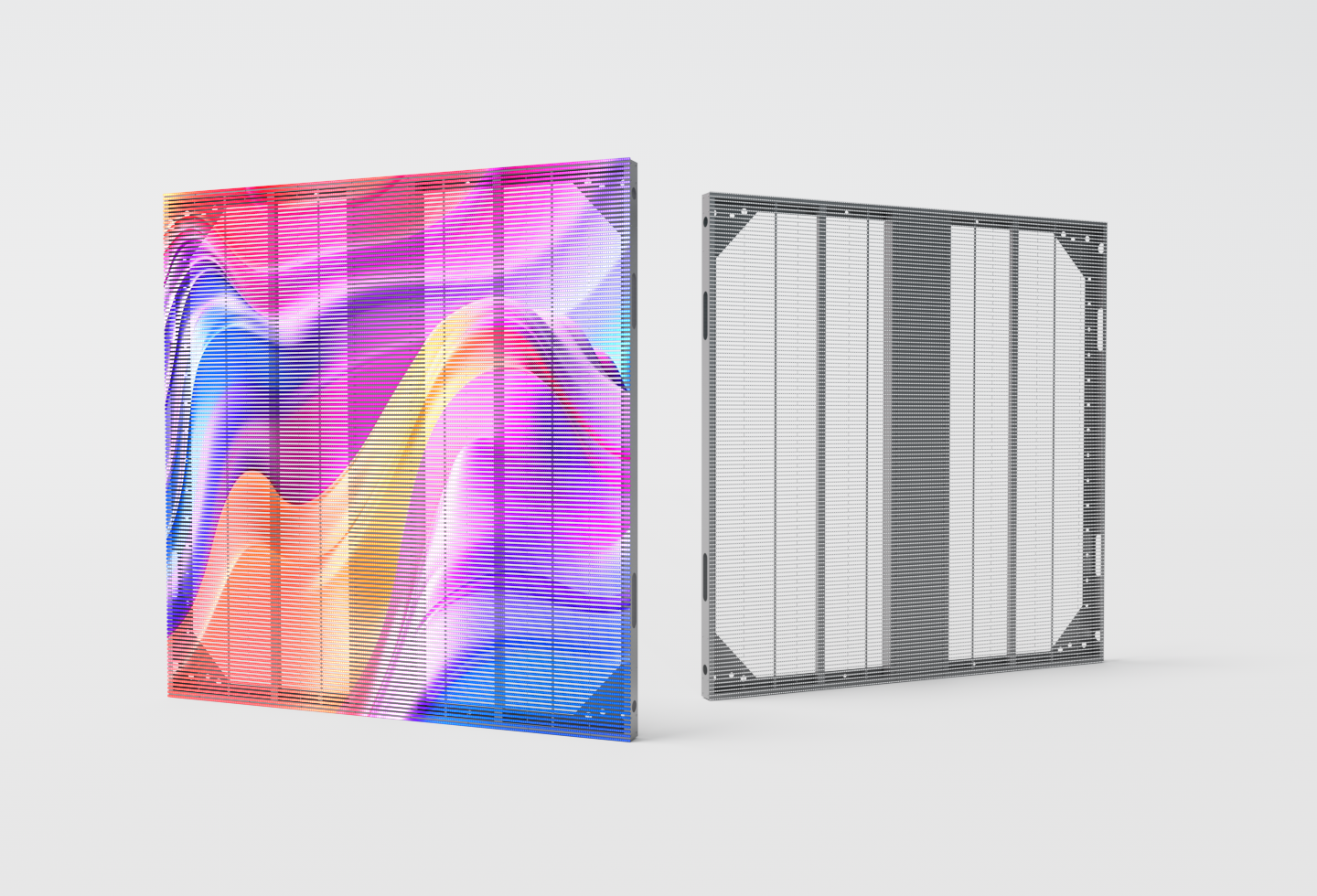 Медиафасад — это светодиодная конструкция, монтируемая на стены, стеклянные фасады зданий. Сочетает функциональность рекламного носителя с архитектурой здания, сохраняет визуальную легкость и не нарушает внешний облик объектов. В отличие от обычных экранов, он монтируется непосредственно на стены или стеклянные поверхности фасадов с помощью легких ферм, сохраняя небольшой зазор от стены.