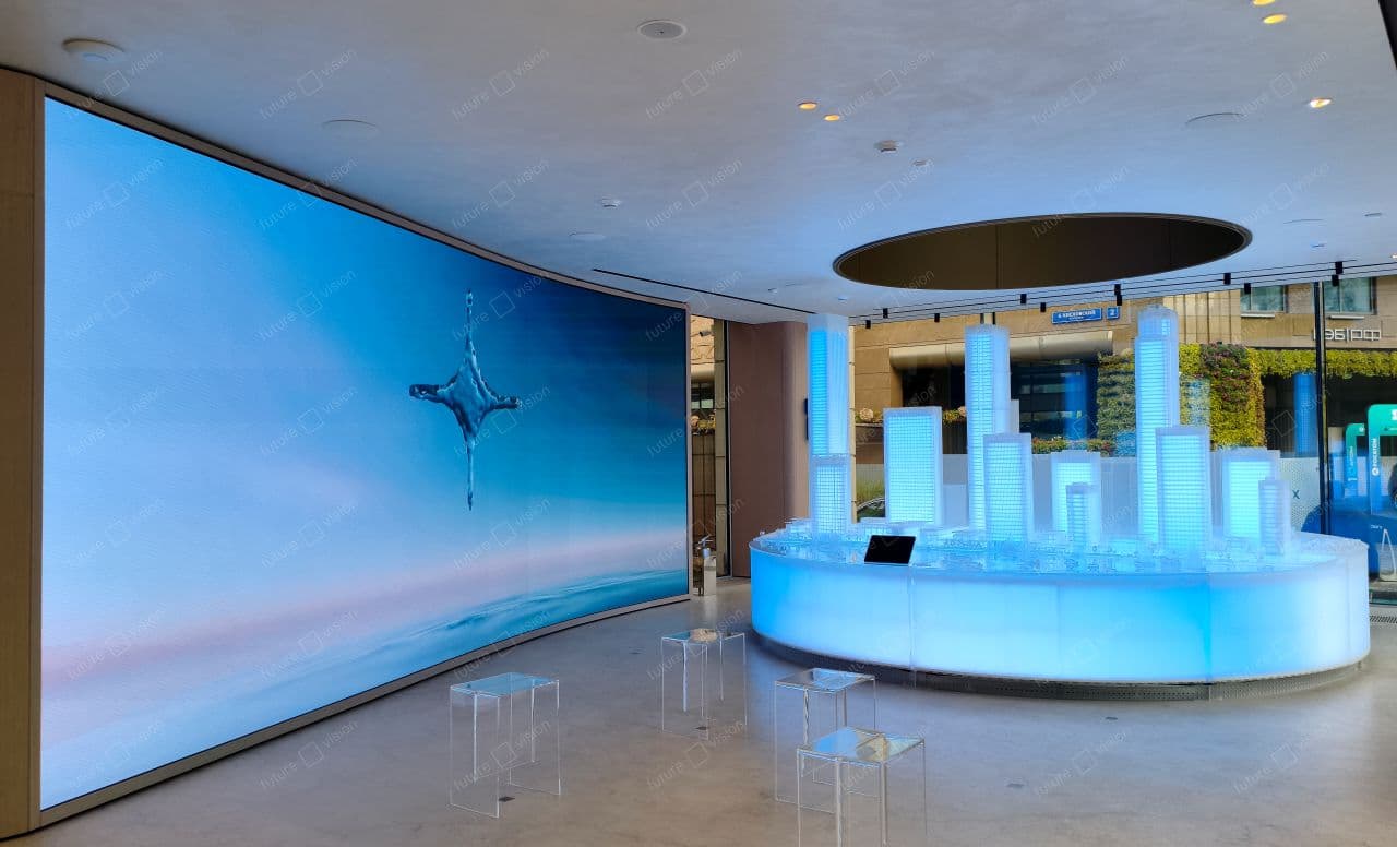 Компания Future Vision изготовила и установила современный светодиодный экран для офиса продаж девелопера LEGENDA в городе Москва. Светодиодная стена размером 4 080 х 2 880 мм стала ярким технологичным акцентом всего помещения. С помощью LED стены застройщик сможет презентовать жилые комплексы и другие решения компании более креативно, эффективно и динамично в сравнении со статичными изображениями. Частота обновления 3840 Гц и малый шаг пикселя Р1.25 обеспечивают повышенное качество изображения с минимального расстояния.